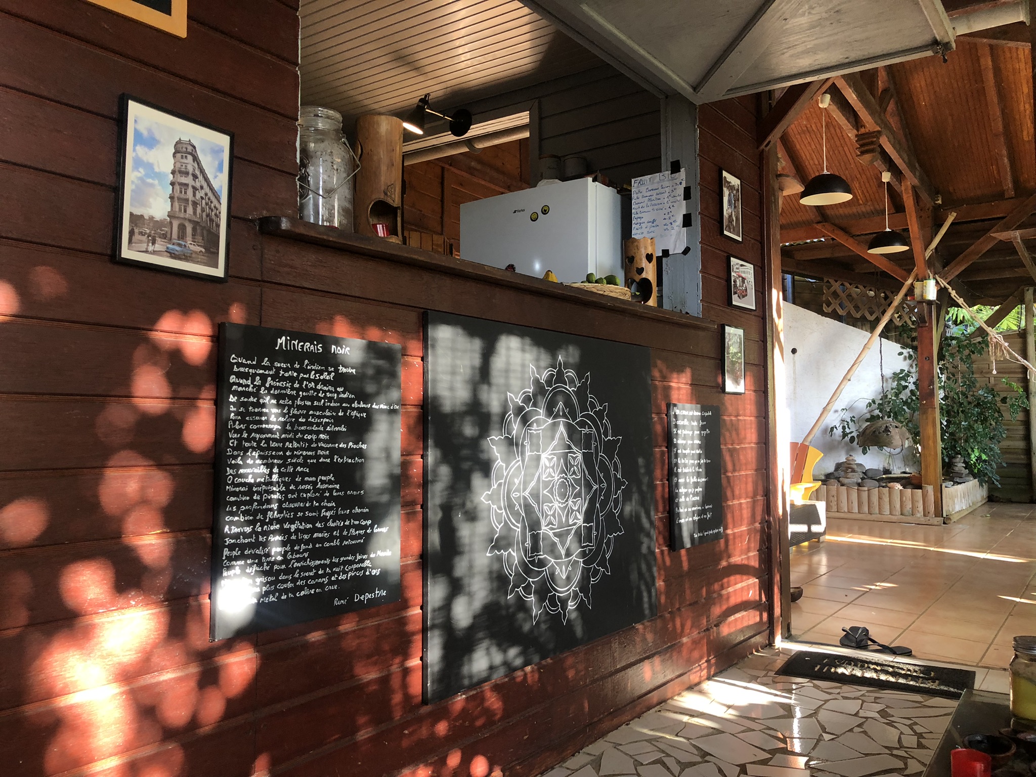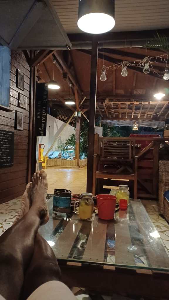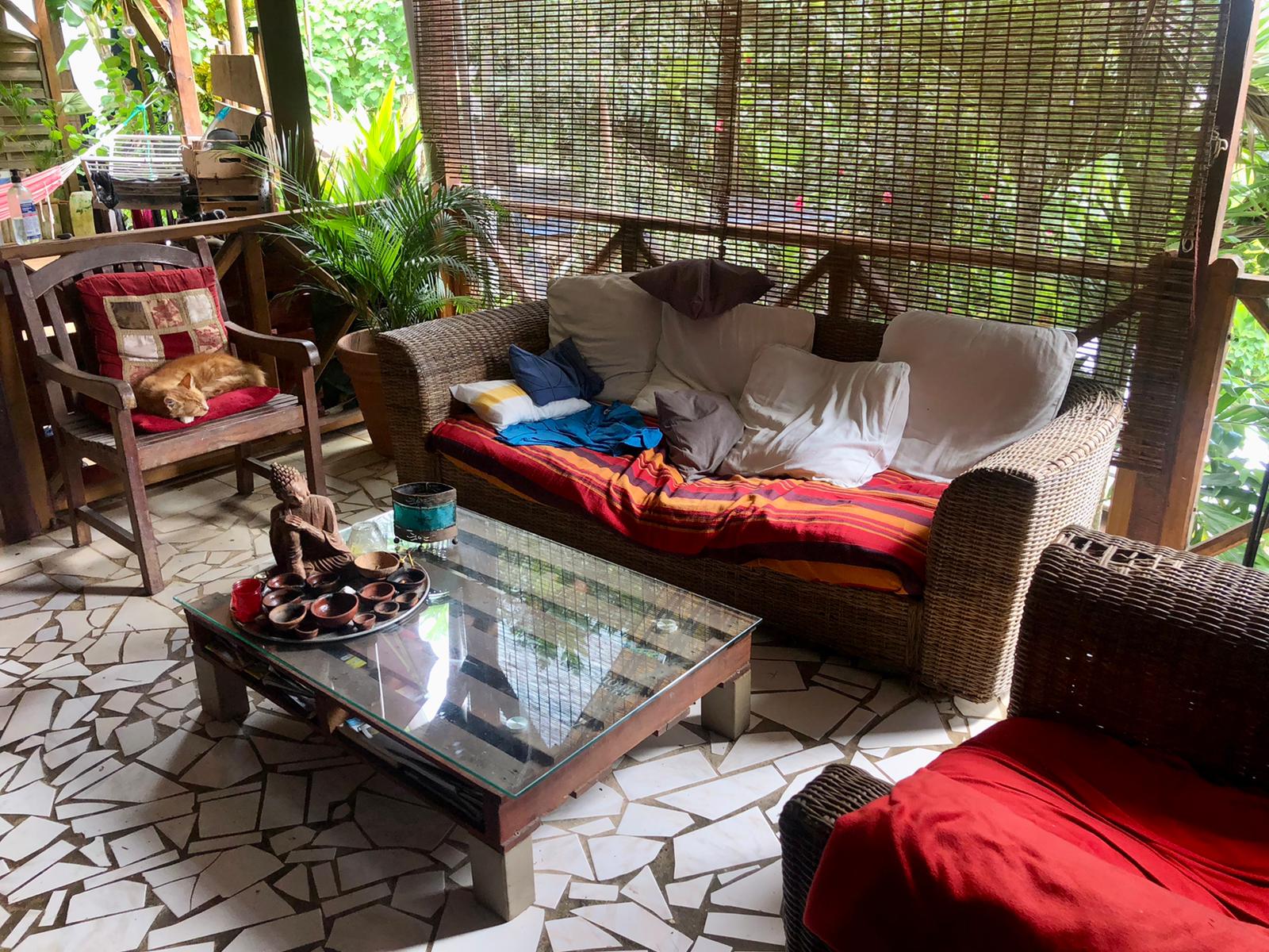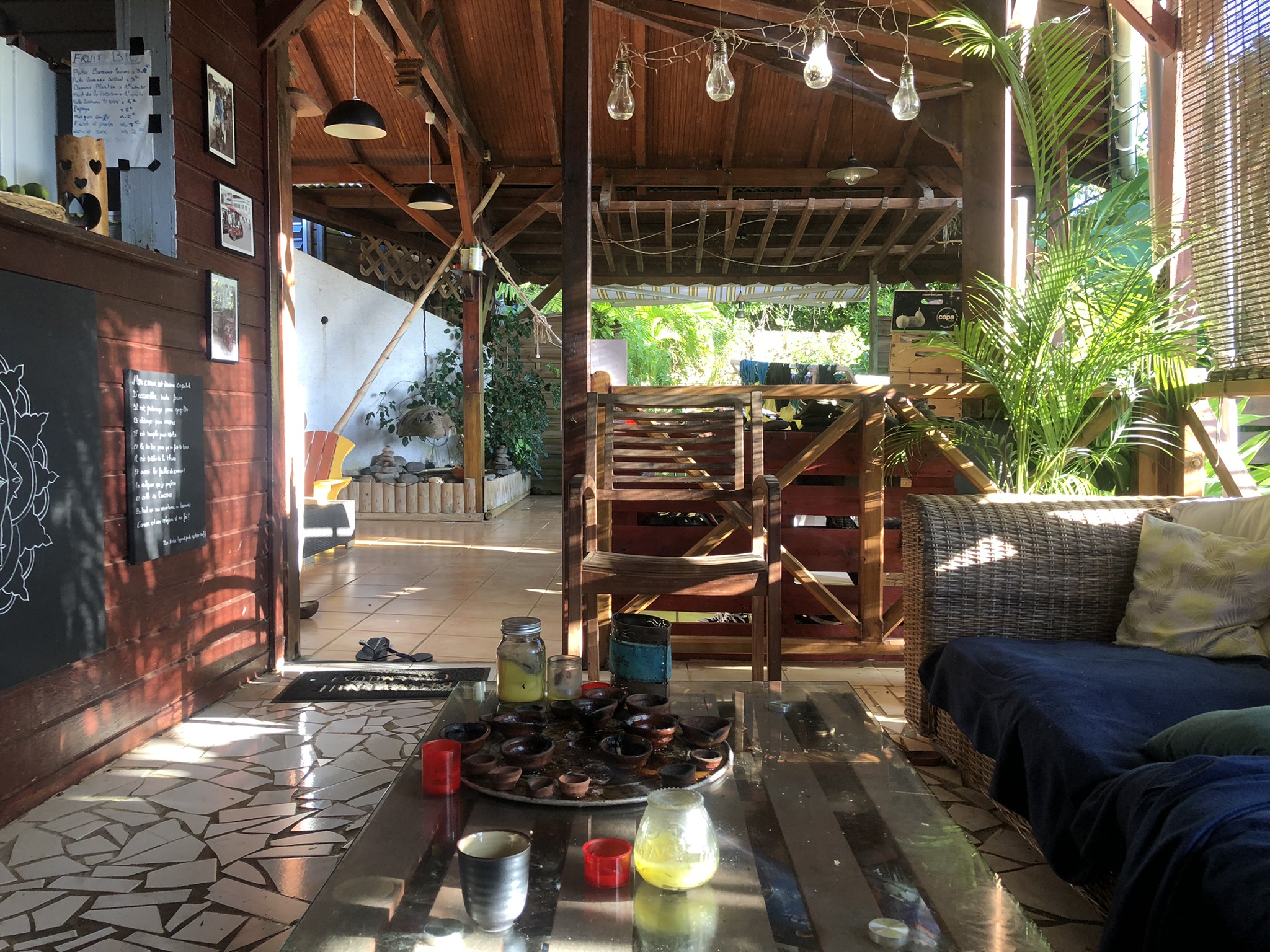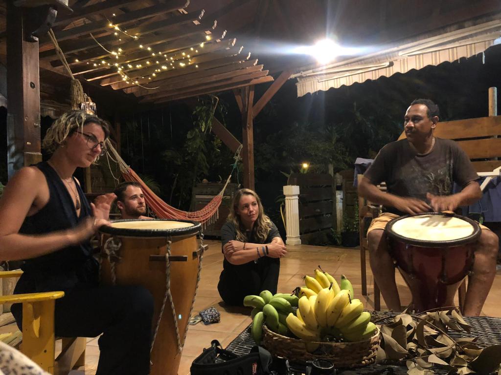 Il fait presque la nuit, encore 20 mètres et quelques marches à monter avant de rentrer à la maison. Une bonne douche plus tard et vous serez prêt à squatter le hamac ! A moins que vous ne préfériez directement passer à l’apéro : un ti-punch, un verre de planteur de Patrice, un punch (rhum arrangé) de sa maman, un smoothie de fruits frais du jardin… Trop de choix ! Heureusement, l’assiette d’acras de morue met tout le monde d’accord !
