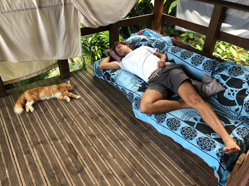 L’hostel Bana, c’est se réveiller le matin au chant du coq, méditer ou faire du yoga sur la petite terrasse arrière, de là où l’on peut voir la mer au loin et commencer à rêver à la journée qui nous attend.
