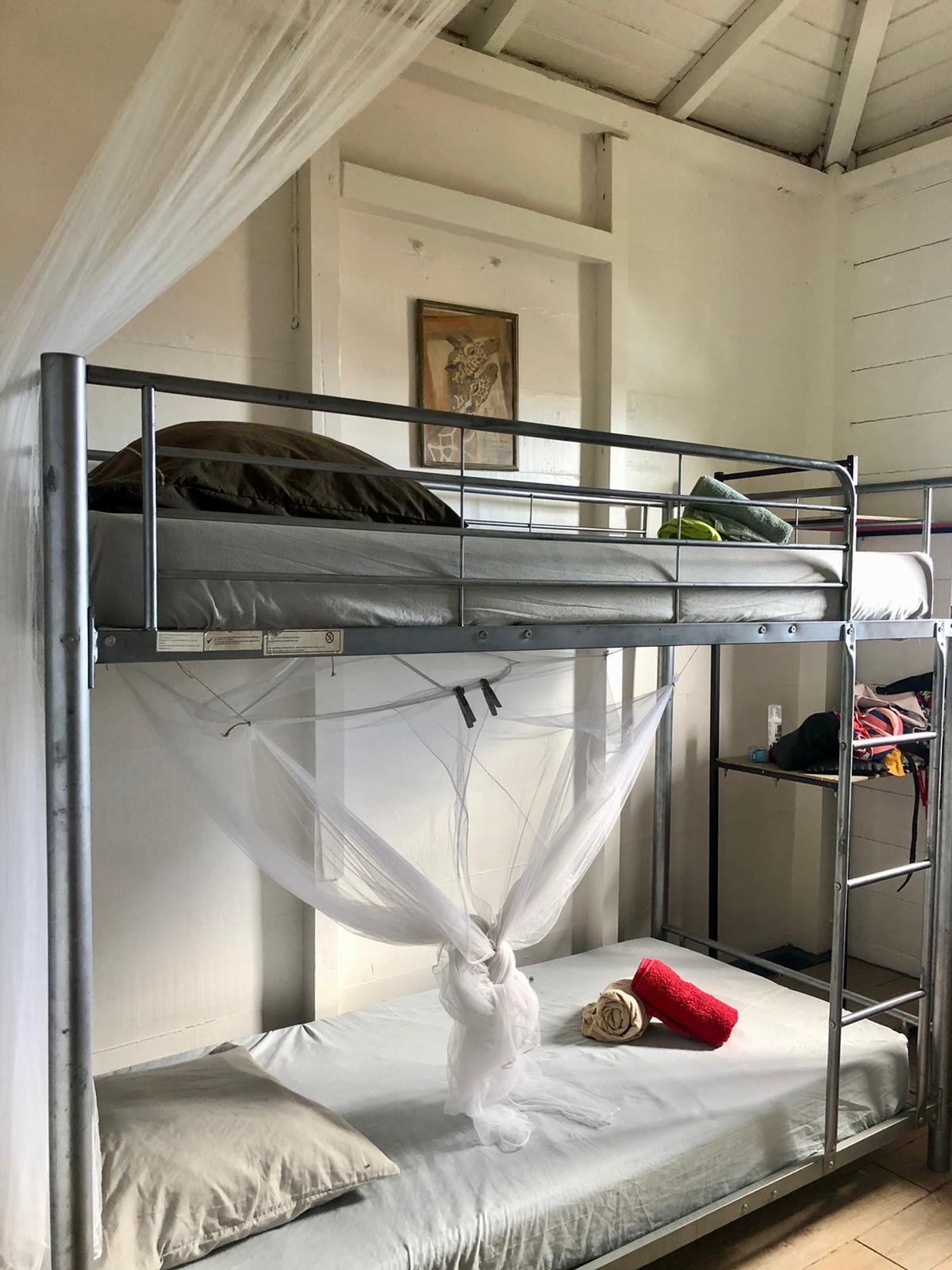 - 1 chambre de 2 lits superposés (4 couchages) avec ventilateurs et moustiquaires